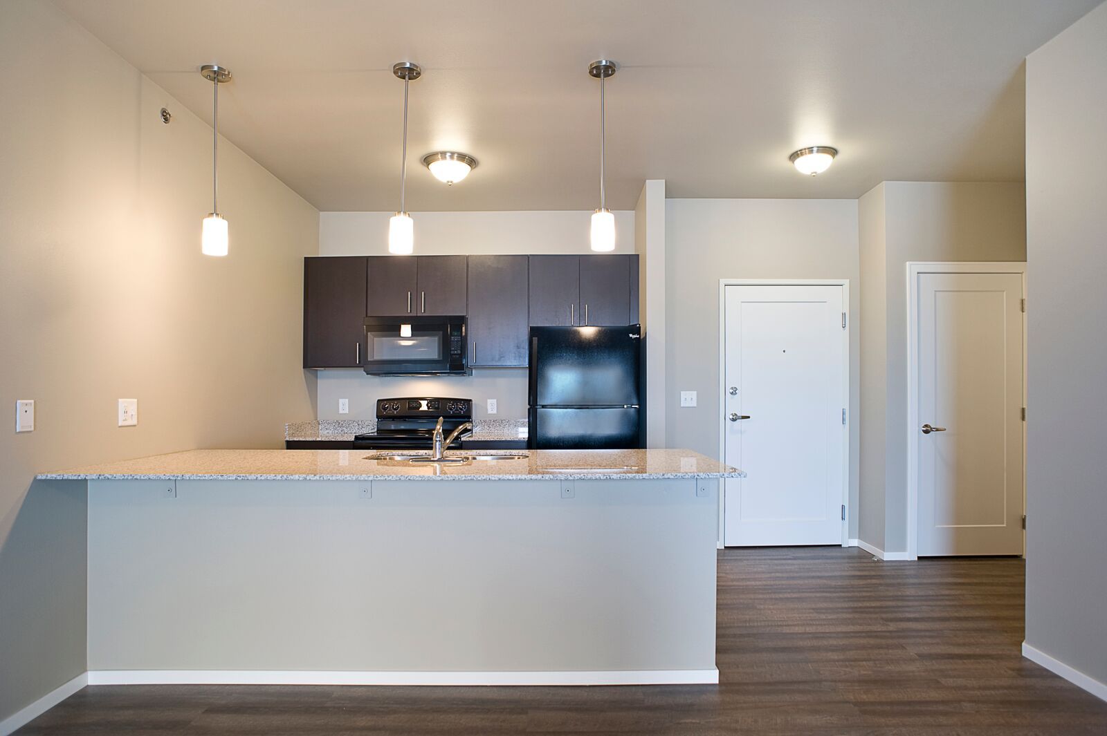Spacious Kitchens with Refrigerator, Glass Top Range, Dishwasher, Full-sized Microwave