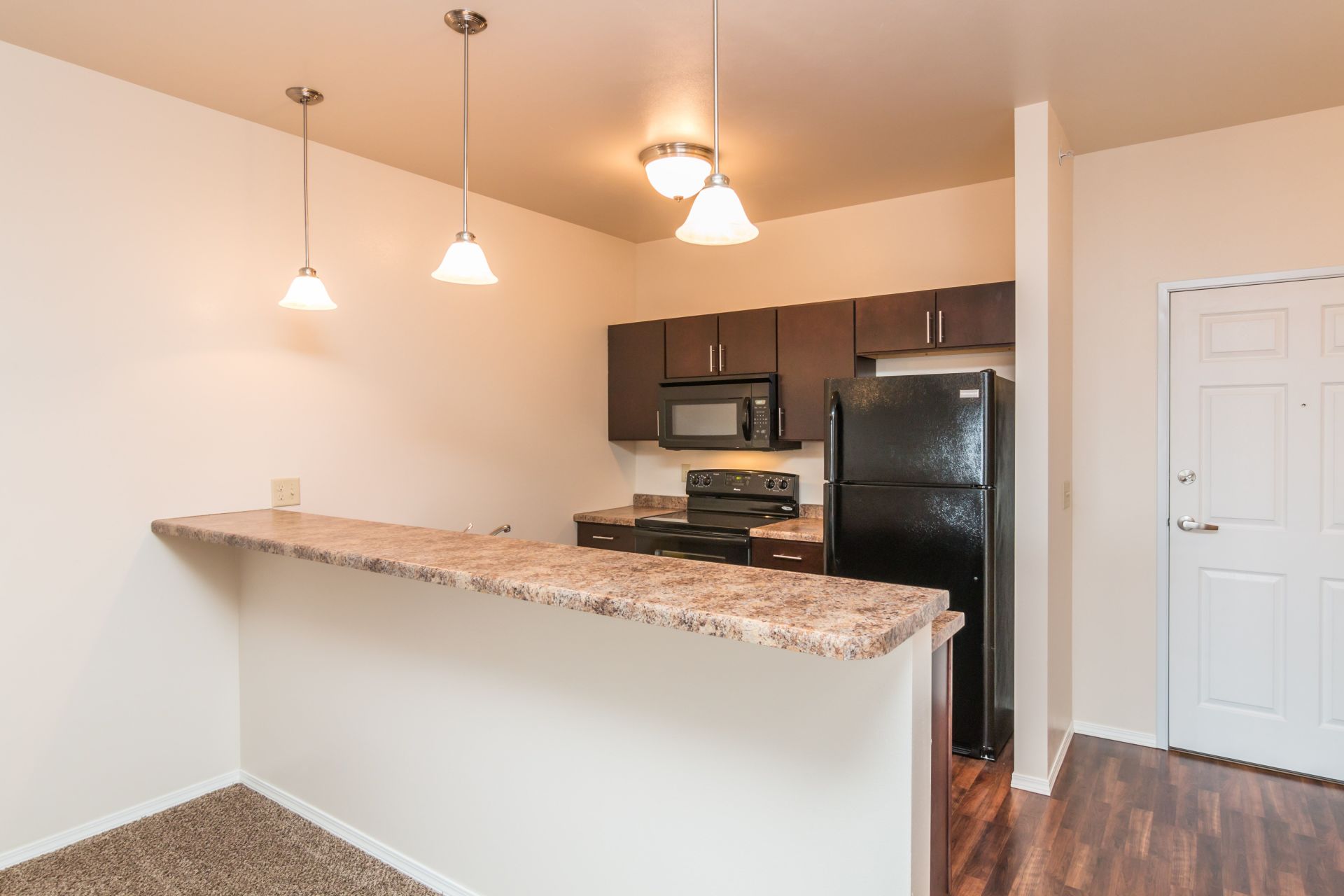 Spacious Kitchens with Refrigerator, Glass Top Range, Dishwasher, Full-sized Microwave