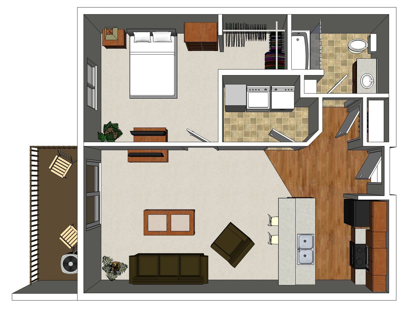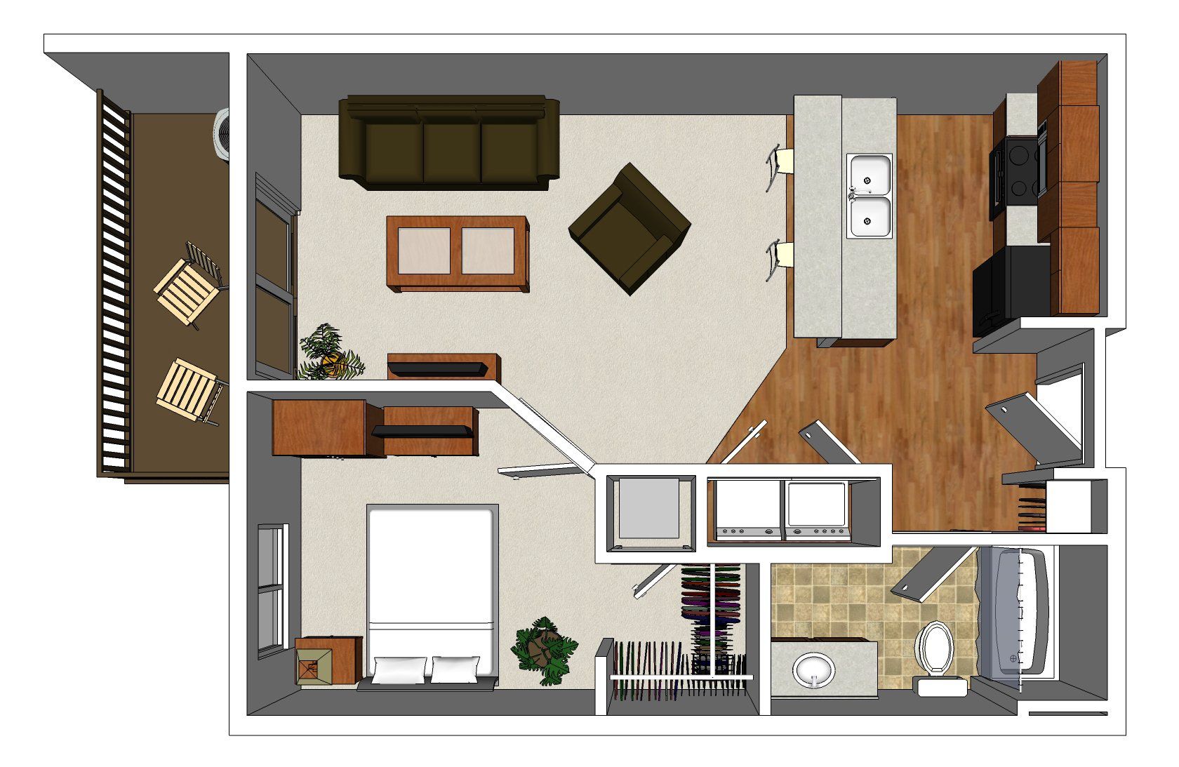 Studio, 1 Bedroom and 2 Bedroom Unit