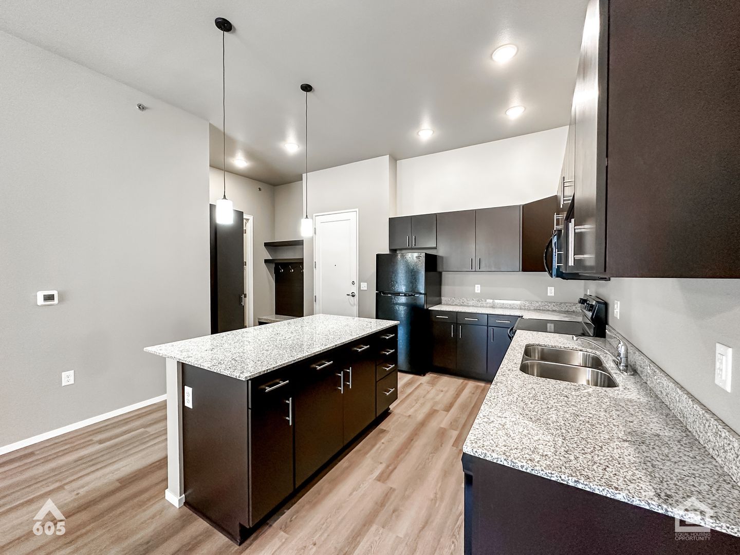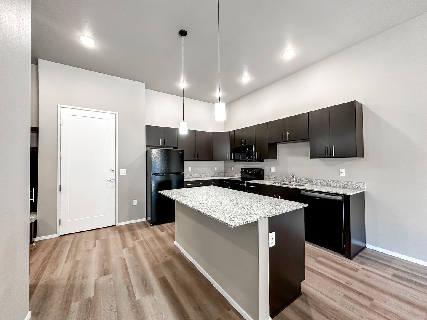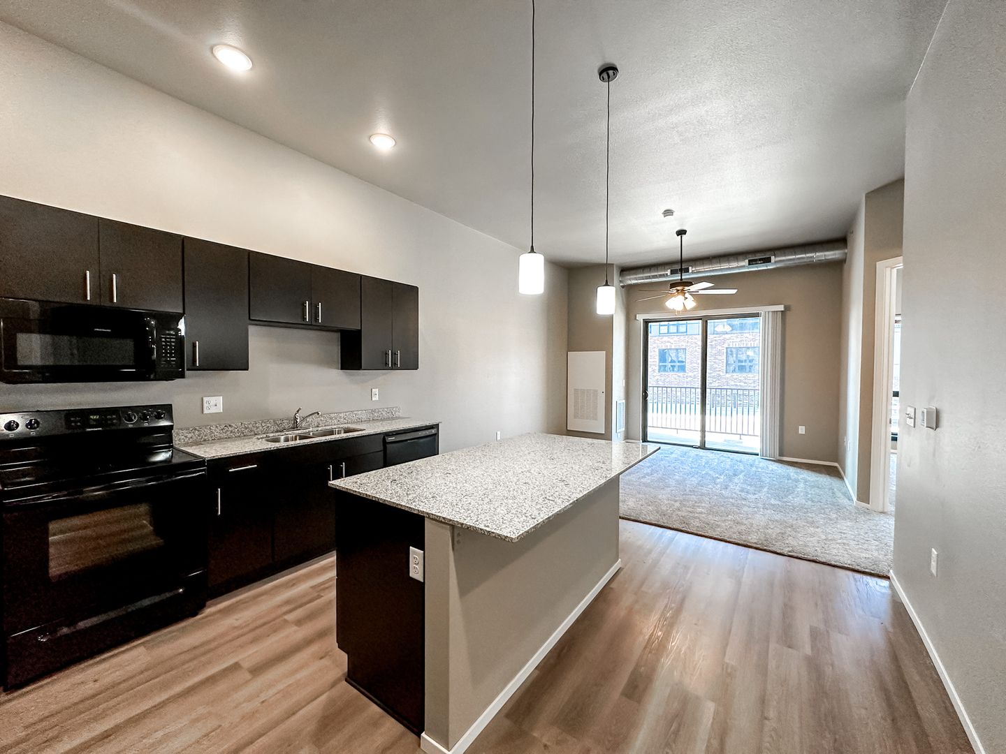 Upscale Large 1 Bed/1 Bath Apartment. Granite countertops, LED lighting throughout, full size washer & dryer in separate laundry room. Heated underground parking spaces, some with storage, available for extra monthly fee. Tenant pays electric (which includes heat) and internet/cable. Landlord pays water, sewer & garbage.