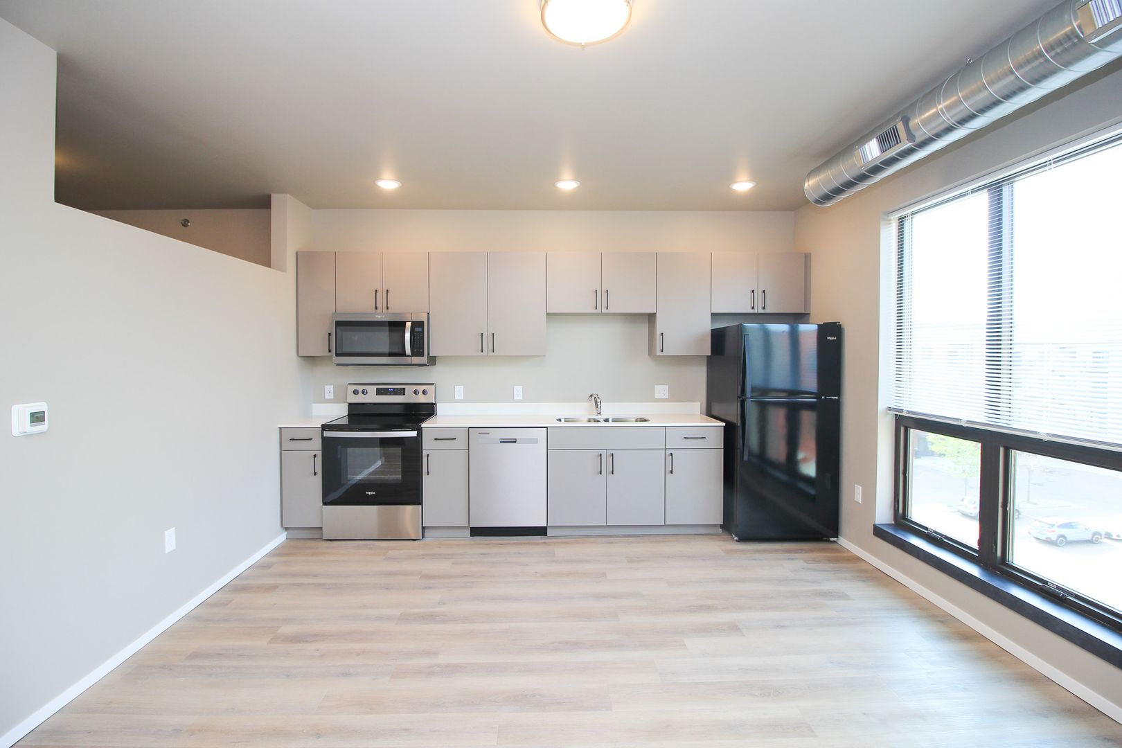Luxury Studio/1 Bath Apartment - First Floor Apartments with Ceilings Over 10ft High. Featuring quartz countertops, soft-close cabinets & drawers, walk-in closets, LED lighting throughout, full size washer & dryer in separate laundry room. Heated underground parking spaces, some with storage, available for extra monthly fee. Tenant pays electric (which includes heat) and internet/cable. Landlord pays water, sewer & garbage.