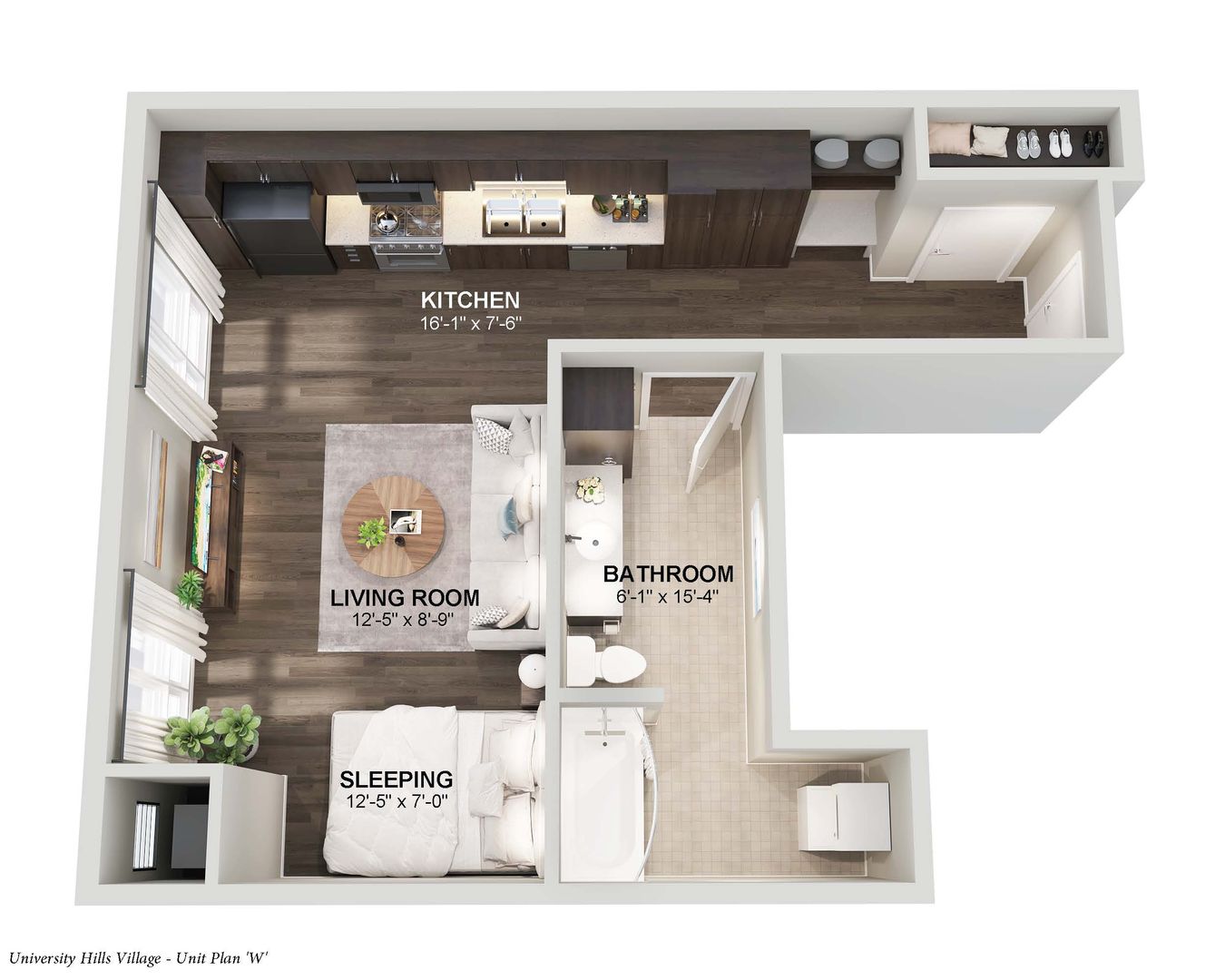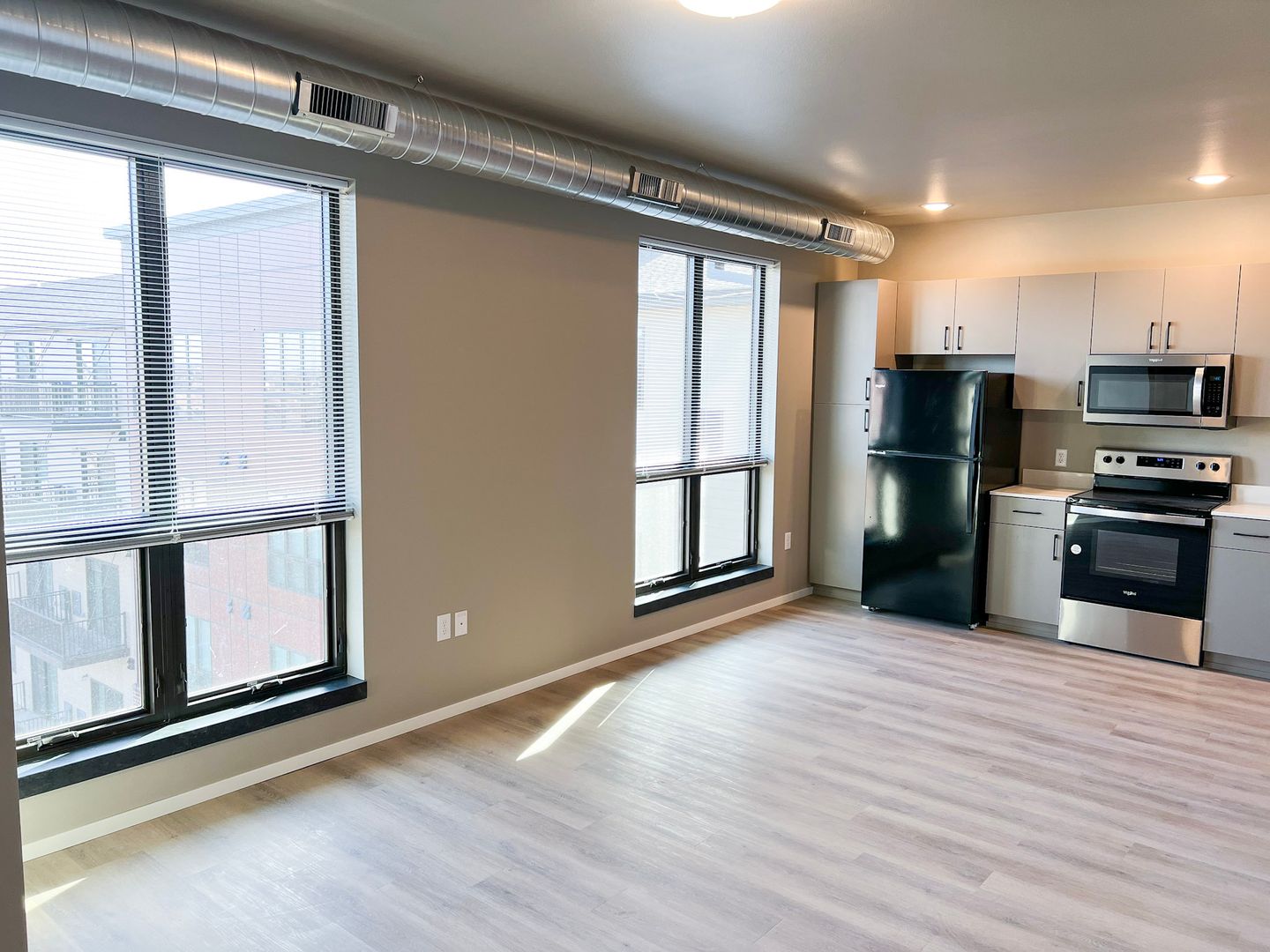 NEW - Luxury Studio/1 Bath Apartment. Featuring quartz countertops, soft-close cabinets & drawers, walk-in closets, LED lighting throughout, full size washer & dryer in separate laundry room. Heated underground parking spaces, some with storage, available for extra monthly fee. Tenant pays electric (which includes heat) and internet/cable. Landlord pays water, sewer & garbage.