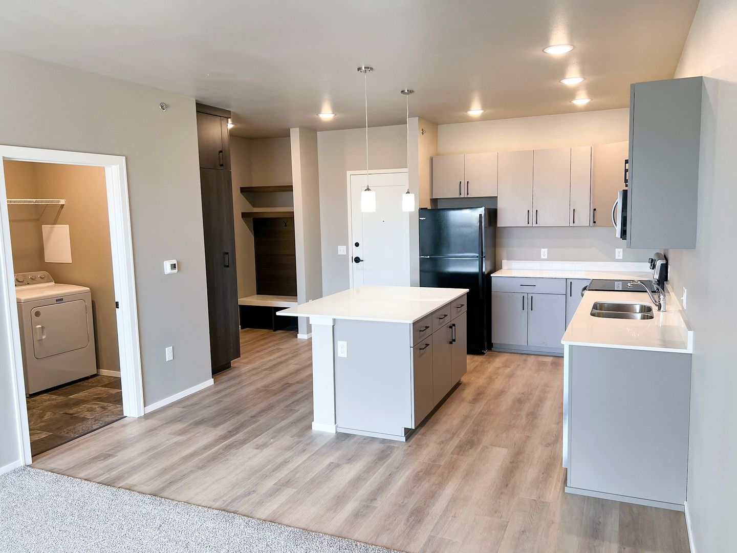 Luxury 1 Bed/1 Bath Apartment - First Floor Apartments with Ceilings Over 10ft High. Featuring quartz countertops, soft-close cabinets & drawers, walk-in closets, LED lighting throughout, full size washer & dryer in separate laundry room. Heated underground parking spaces, some with storage, available for extra monthly fee. Tenant pays electric (which includes heat) and internet/cable. Landlord pays water, sewer & garbage.