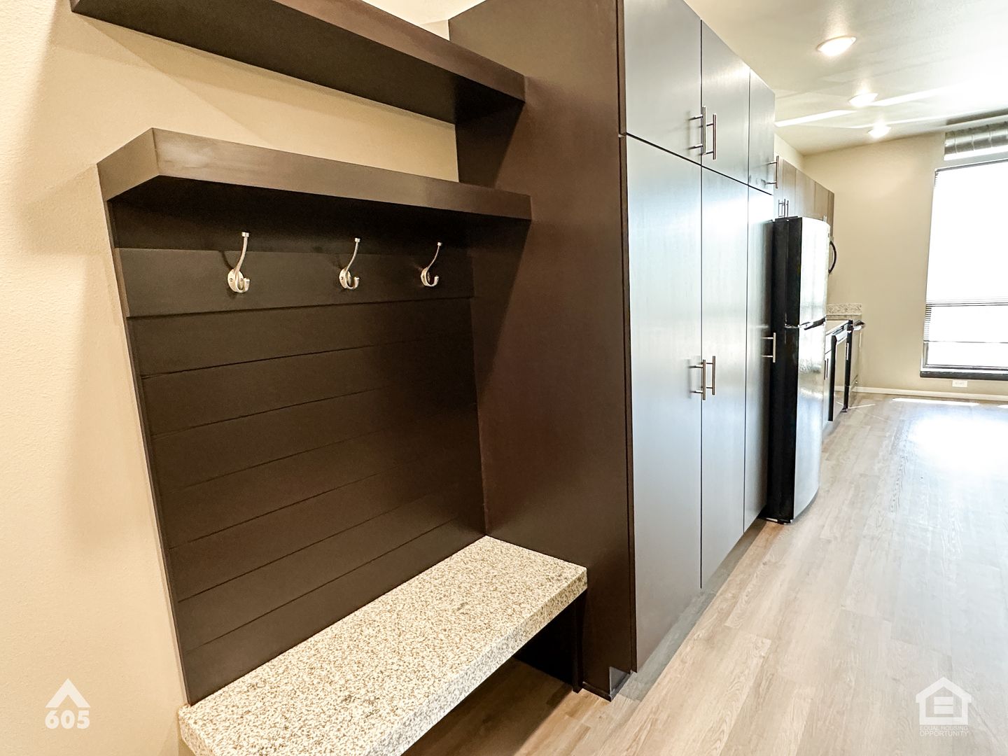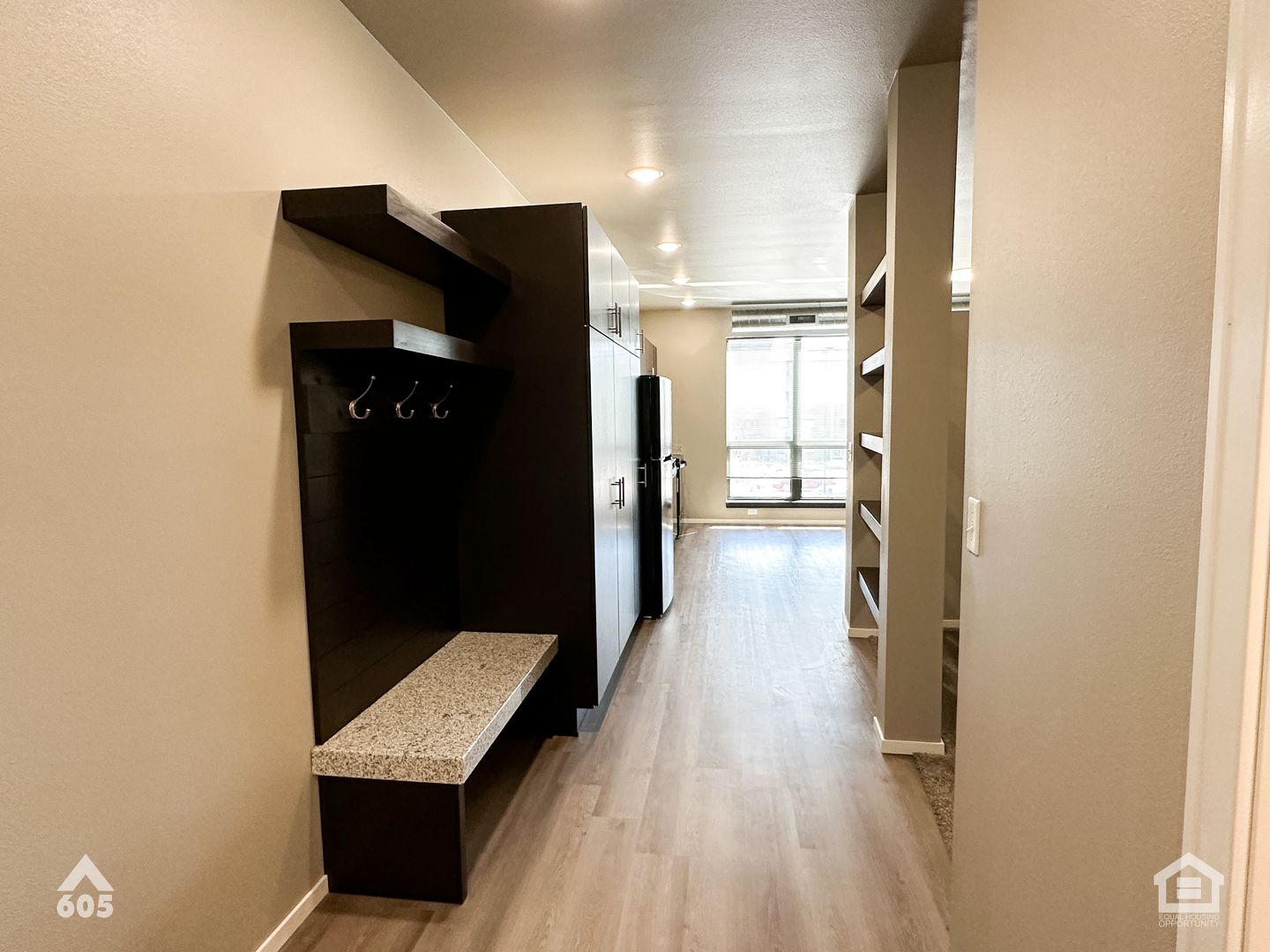 Upscale Studio/1 Bath Apartment. Granite countertops, LED lighting throughout, full size washer & dryer. Heated underground parking spaces, some with storage, available for extra monthly fee. Tenant pays electric (which includes heat) and internet/cable. Landlord pays water, sewer & garbage.