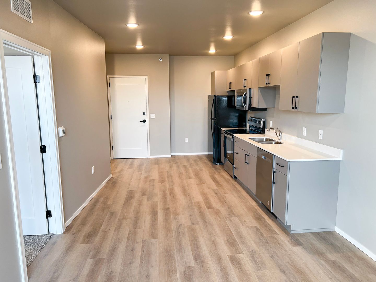 Luxury 1 Bed/1 Bath Apartment - First Floor Apartments with Ceilings Over 10ft High. Featuring quartz countertops, soft-close cabinets & drawers, walk-in closets, LED lighting throughout, full size washer & dryer in separate laundry room. Heated underground parking spaces, some with storage, available for extra monthly fee. Tenant pays electric (which includes heat) and internet/cable. Landlord pays water, sewer & garbage.