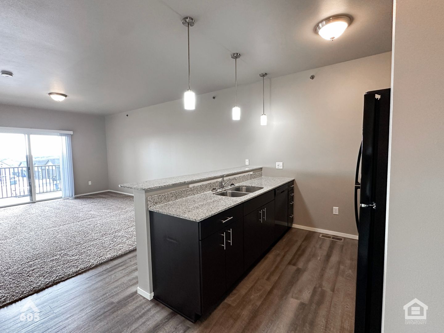A3 Unit Type | Spacious, Quality 1 BD/1 BA Apartment with granite counter tops, LED lighting - Non-Smoking in Northwest Sioux Falls located minutes from Foundation Park, University of South Dakota - Sioux Falls, and the 60th St. Walmart. Easy access to I-90 & I-29. Tenant pays electric (which includes heat) and internet/cable. Landlord pays water, sewer & garbage. Unit features central air, walk-in closets, washer and dryer in spacious laundry room, as well as a private deck. Kitchen Includes range, refrigerator, microwave, dishwasher and garbage disposal.