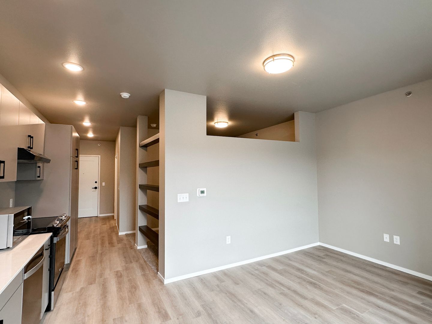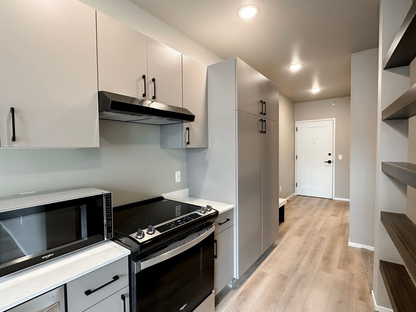 NEW - Luxury ADA Studio/1 Bath Apartment. Featuring quartz countertops, soft-close cabinets & drawers, walk-in closets, LED lighting throughout, full size washer & dryer in separate laundry room. Heated underground parking spaces, some with storage, available for extra monthly fee. Tenant pays electric (which includes heat) and internet/cable. Landlord pays water, sewer & garbage.